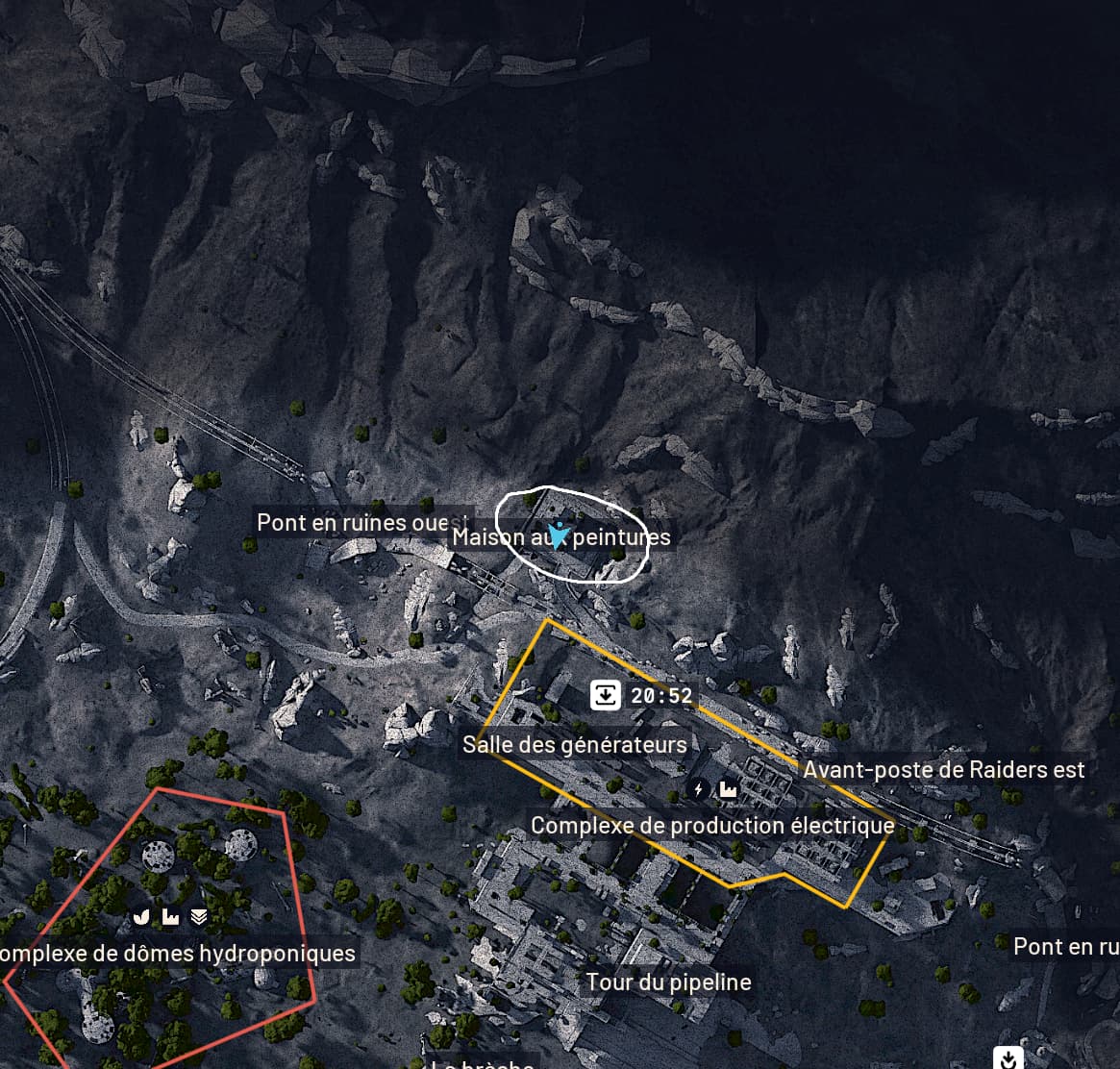 - Dans Champ de bataille du Barrage, signaler la maison aux peintures