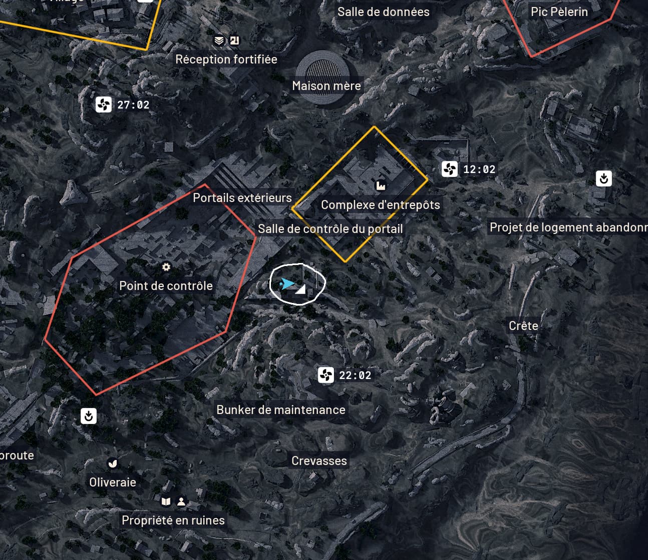 - Dans Portail bleu, signaler la tour de guet blanche au sud du complexe d'entrepôts